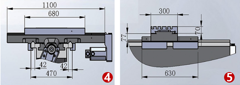 5. X-direction skateboard: The skateboard has a length of 1100mm, a large contact surface, good stability, excellent shock resistance, and durability. The skateboard has large dimensions in terms of length, width, and height, and is equipped with a T-shaped groove. Whether it is installing and arranging knives, tool holders, or power heads, it is simple, fast, and easy to adjust, with strong flexibility.